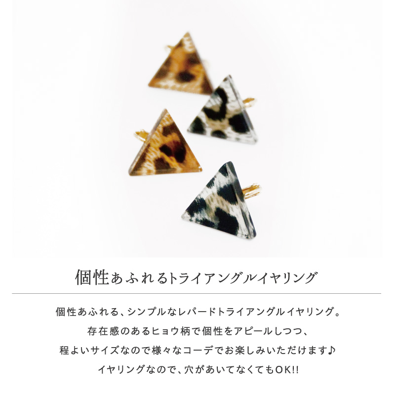 個性あふれる、シンプルなレパードトライアングルイヤリング。