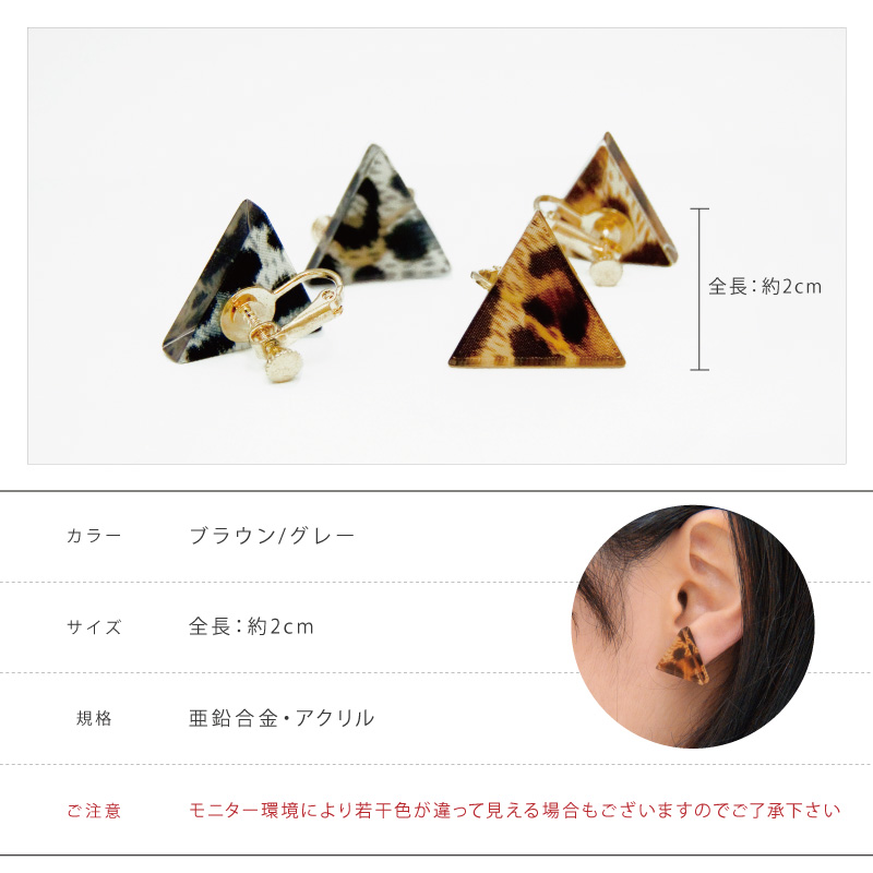 『レオパードトライアングルイヤリング』トライアングル 三角形 アクリル 亜鉛合金