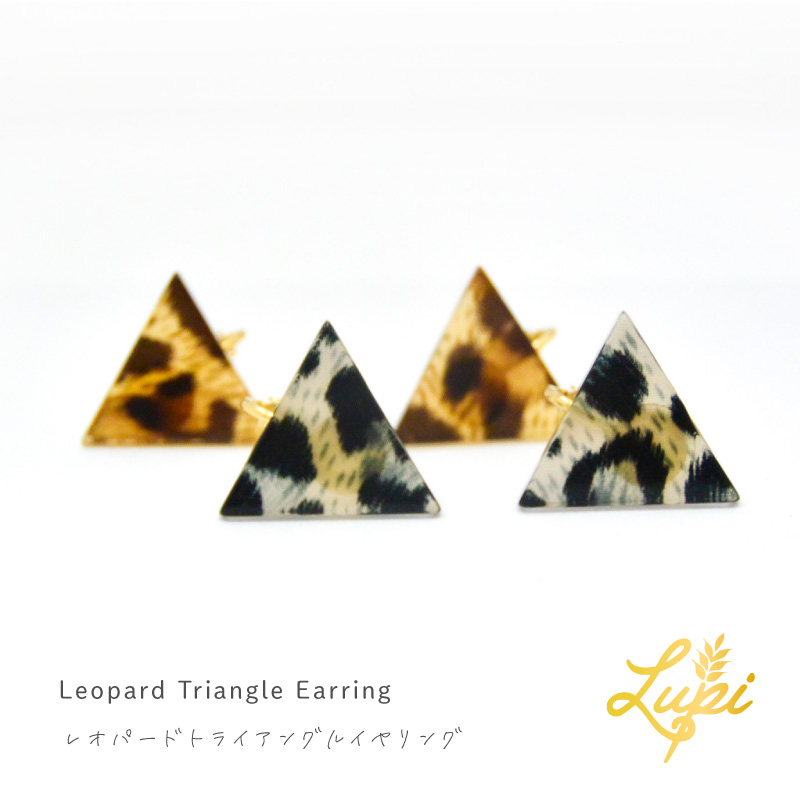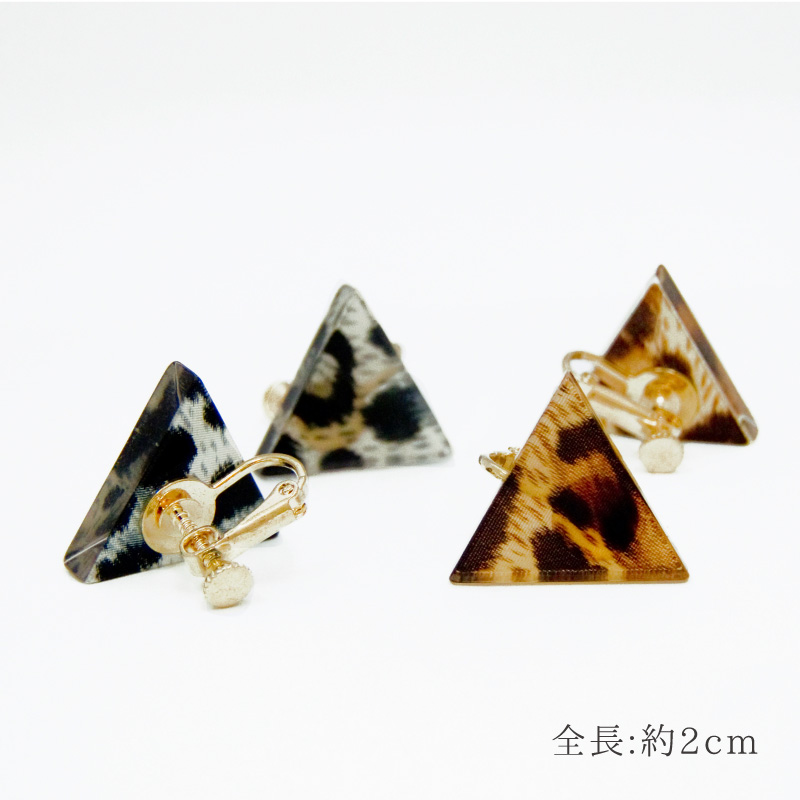 『レオパードトライアングルイヤリング』トライアングル 三角形 アクリル 亜鉛合金