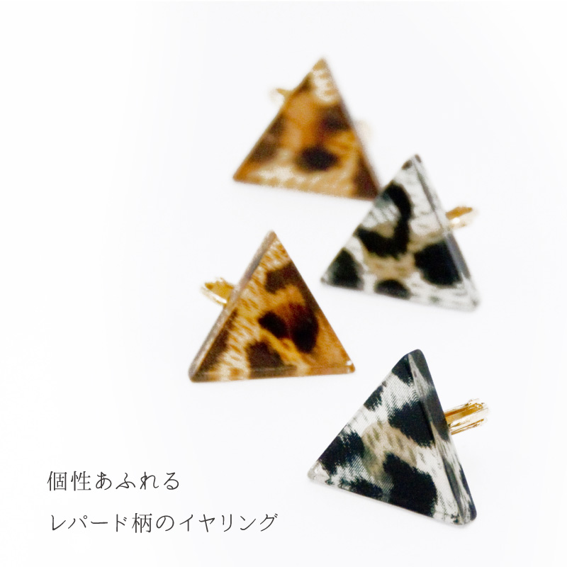 個性あふれる、シンプルなレパードトライアングルイヤリング。
