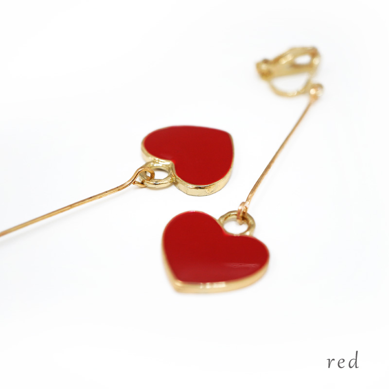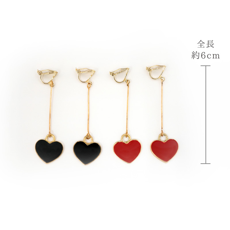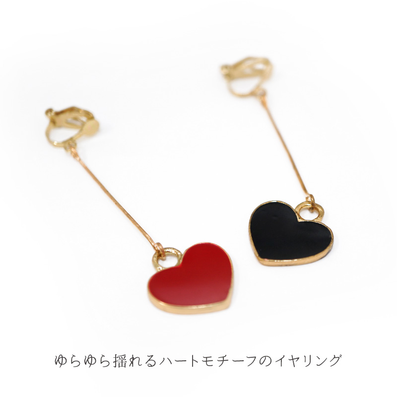 ゆらゆら揺れて可愛いハートモチーフのイヤリング♪ 友達とおソロも◎ ■カラー レッド / ブラック ■サイズ 全長:約6cm モチーフ:約1.7cm ■規格 亜鉛合金 ■ご注意 モニター環境により若干色が違って見える場合もございますのでご了承下さい