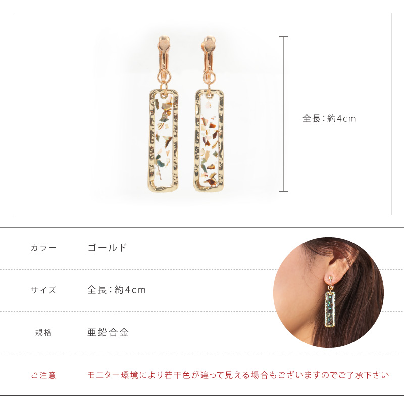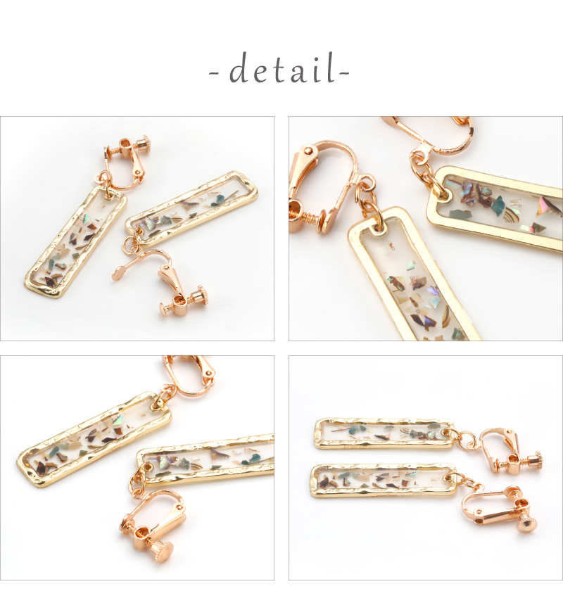 『シェルボードイヤリング』揺れる 透明 ゴールド 夏 貝 シェル