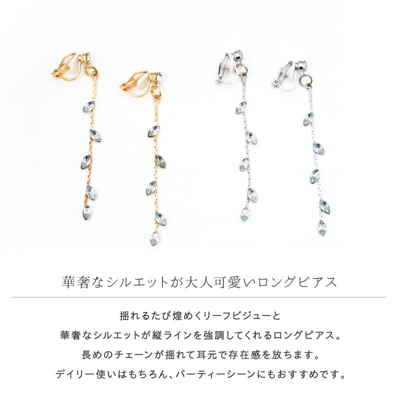 『リーフタッセルイヤリング』 ゴールド シルバー リーフ ビジュー チェーン ロング