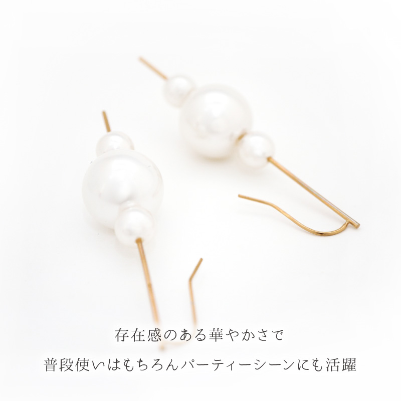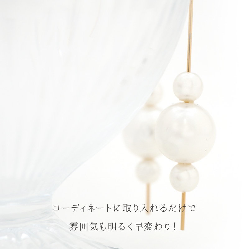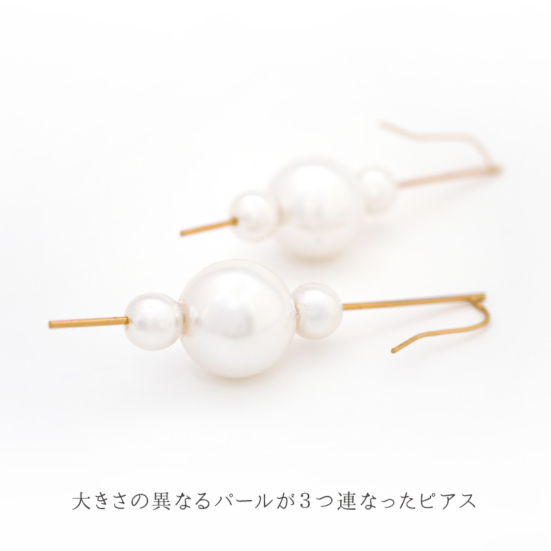 『三連パールスティックピアス』パール 結婚式 謝恩会 パーティー プレゼント