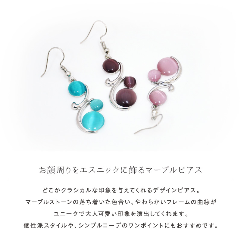 『ラウンドフックピアス』 シルバー ピンク パープル 紫 ブルー 青 水色 マーブル エレガント 大人
