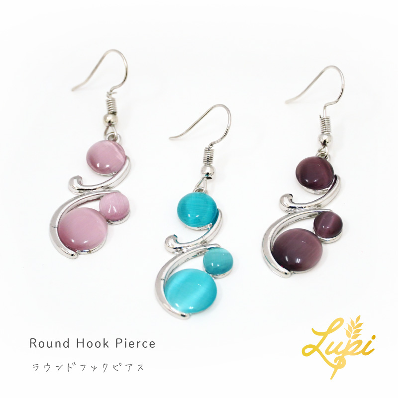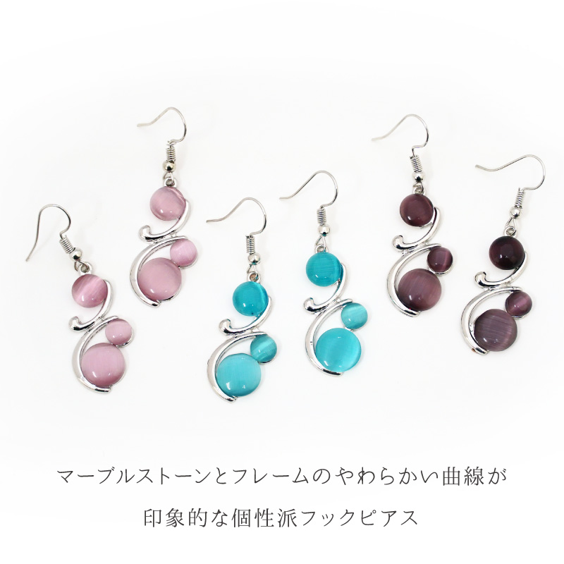 『ラウンドフックピアス』 シルバー ピンク パープル 紫 ブルー 青 水色 マーブル エレガント 大人