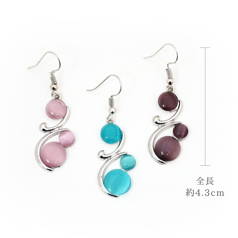 縁のラインがなめらかなので着けている方の雰囲気も穏やかに且つその人らしさがでることでしょう。 ■カラー ピンク/ブルー/パープル ■サイズ 全長:約4.3cm ■規格 亜鉛合金・半貴石 ■ご注意 モニター環境により若干色が違って見える場合もございますのでご了承下さい