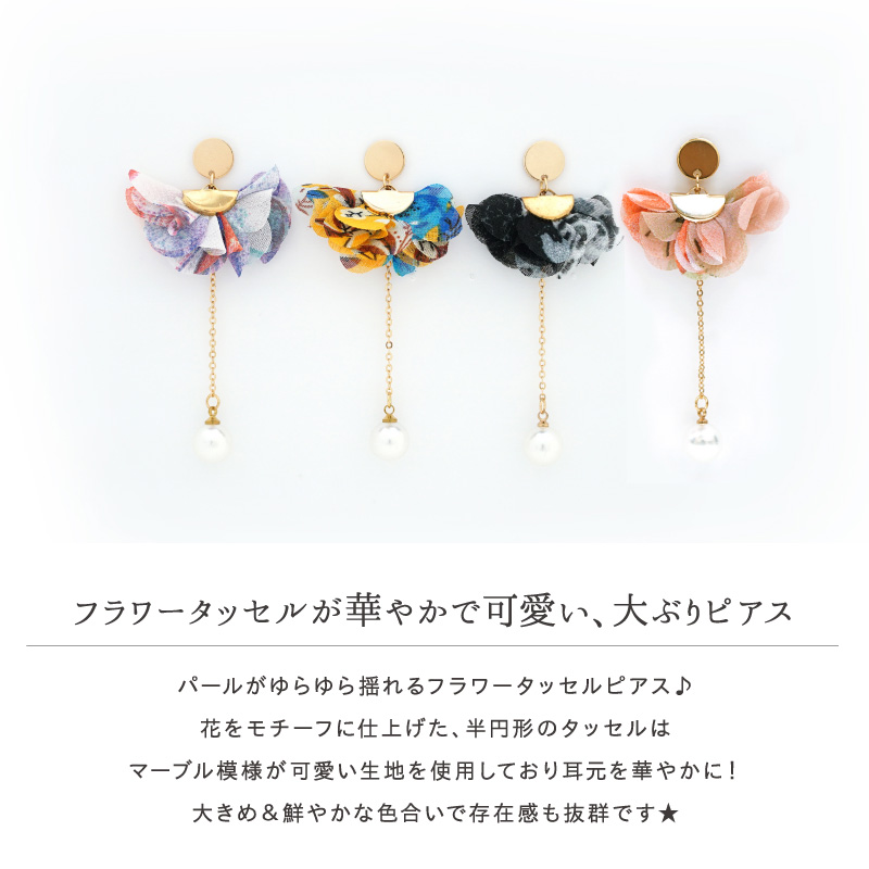 『フラワータッセルパールピアス』揺れる 花 フラワー パール 大ぶり タッセル