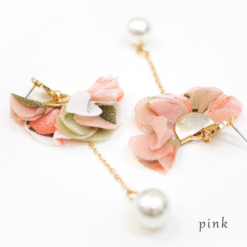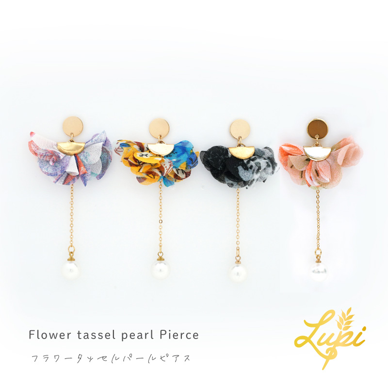 パールがゆらゆら揺れるフラワータッセルピアス♪