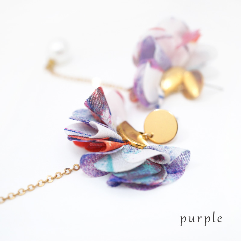 『マーブルフラワーフックピアス』大ぶり パープル 紫 ベージュ 茶色 ブラウン マーブル ゴールド 大きめ