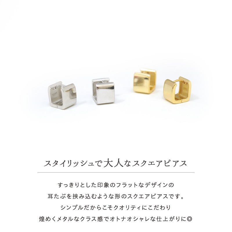 『スクエアスタッドピアス』シルバー925 金属アレルギー対応 スクエア ゴールド シルバー 小さめ シンプル
