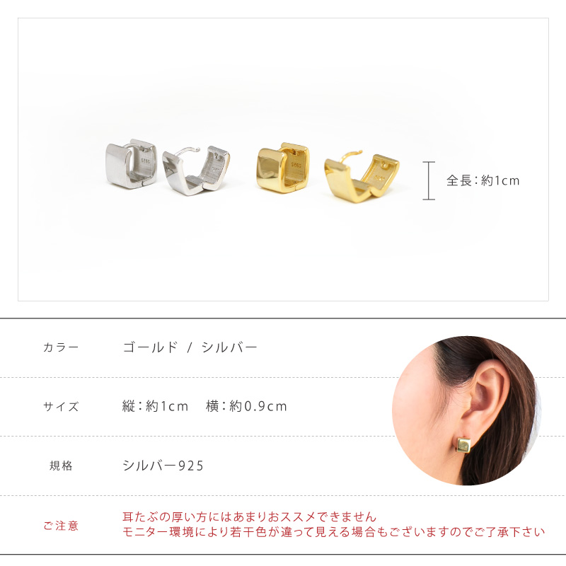 シンプルなので普段使いにもGOOD! 他のピアスと一緒に着けても素敵です カラーはゴールドとシルバーをご用意 ※耳たぶの厚い方にはあまりおススメできません ■カラー ゴールド / シルバー ■サイズ 縦:約1cm 横:約0.9cm ■規格 シルバー925 ■ご注意 モニター環境により若干色が違って見える場合もございますのでご了承下さい