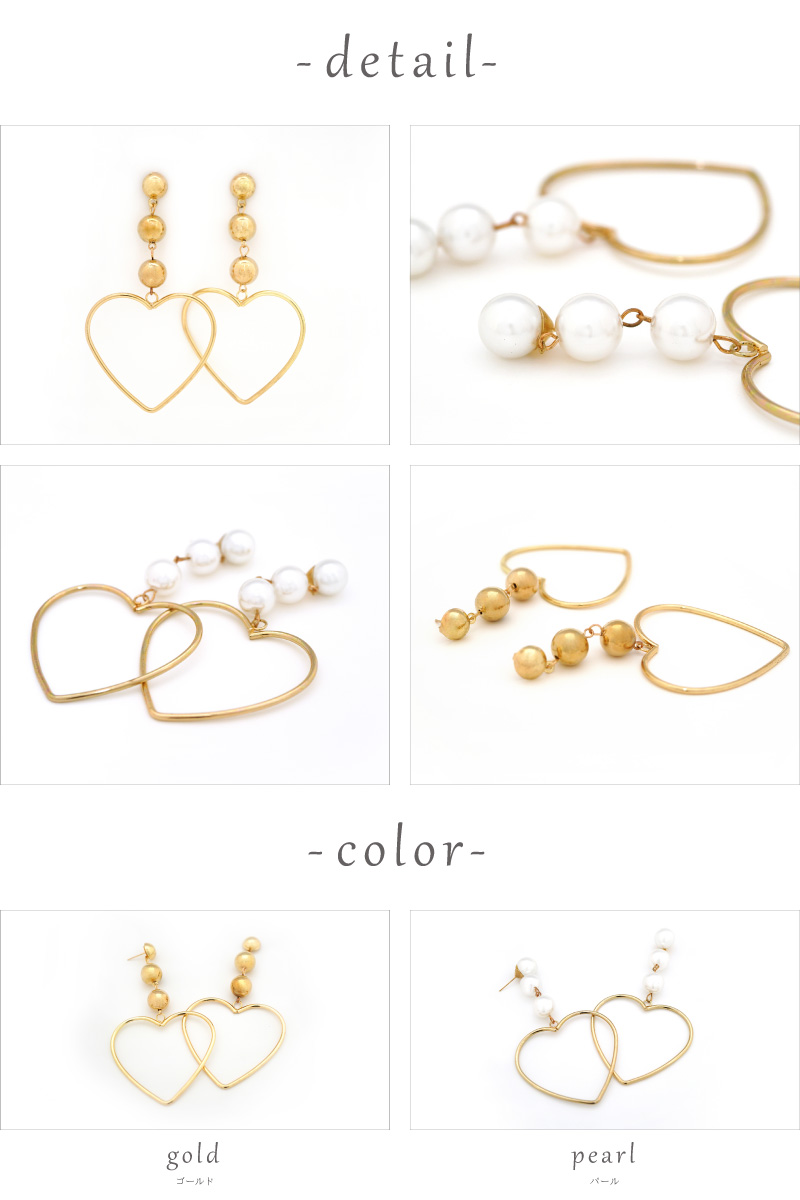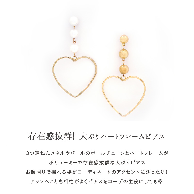 『ビッグハートゴールドパールピアス』大ぶり ハート サークル ゴールド パール 大ぶり
