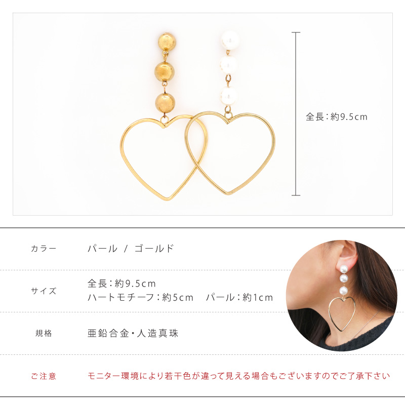 ■サイズ 全長:約9.5cm ハートモチーフ:約5cm パール:約1cm