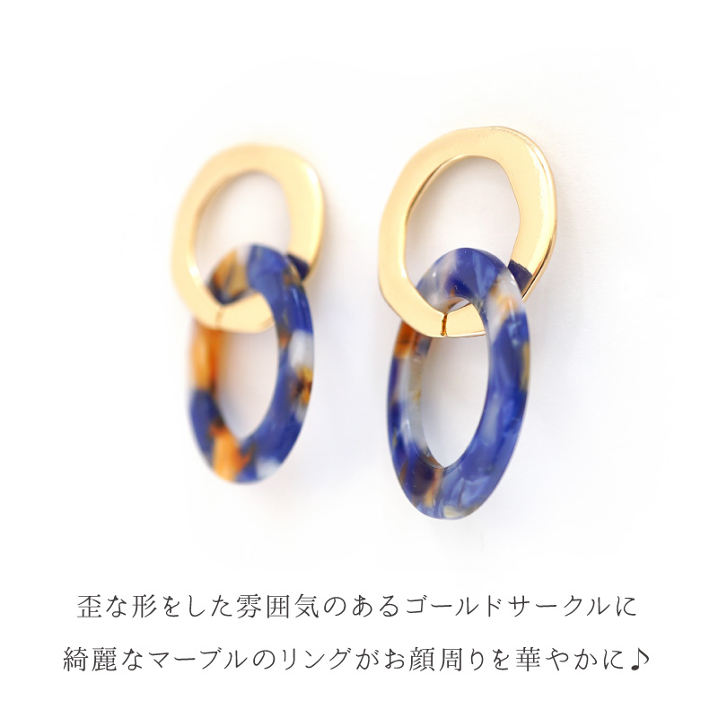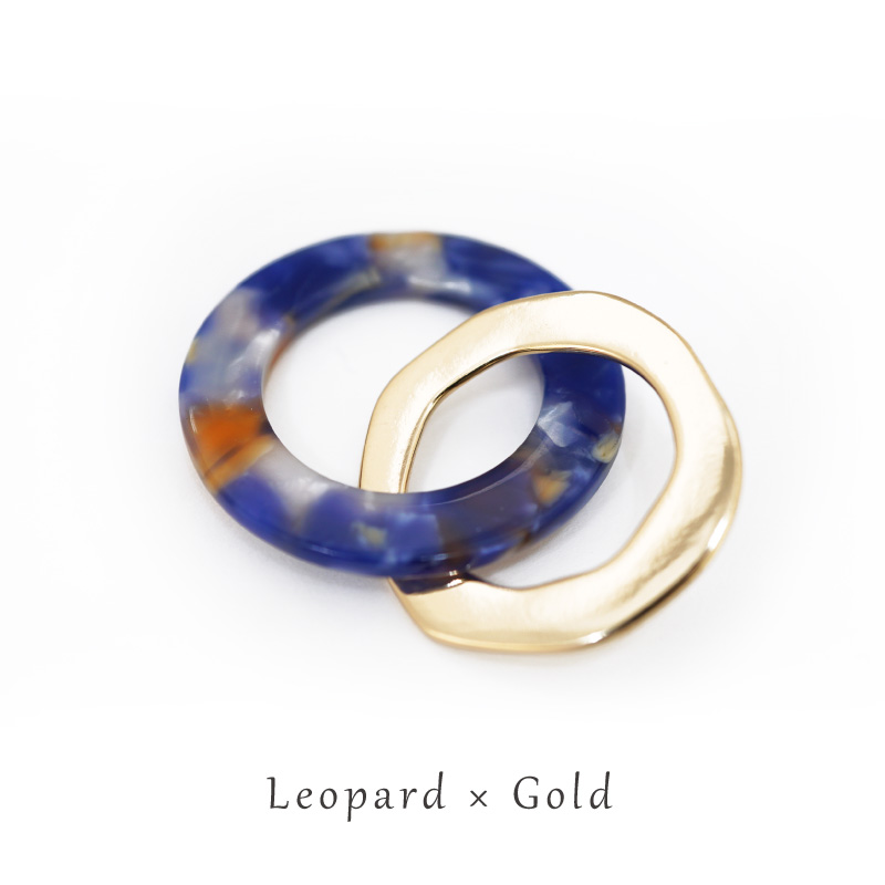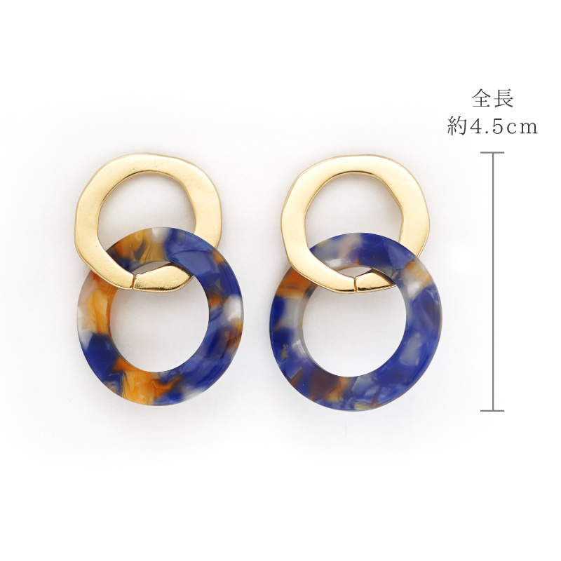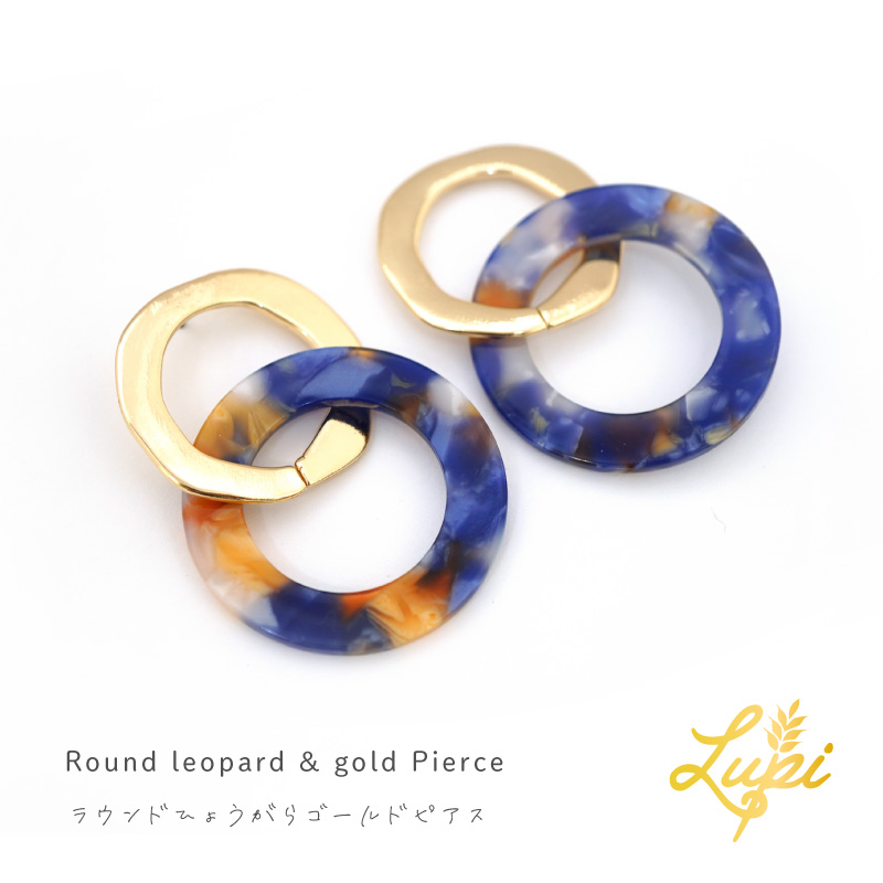『ラウンドひょう柄ゴールドピアス』大ぶり べっ甲風 サークル リング ゴールド ブルー イエロー マーブル