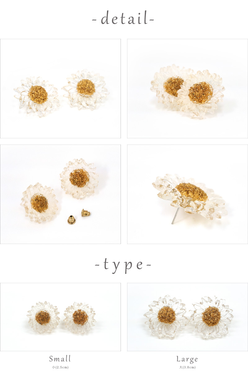 シンプルなお洋服にもピッタリでクリアがとても涼し気なフラワーピアスです☆