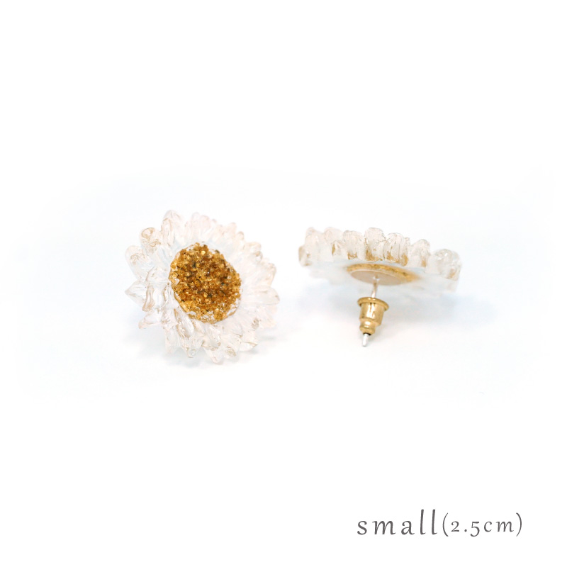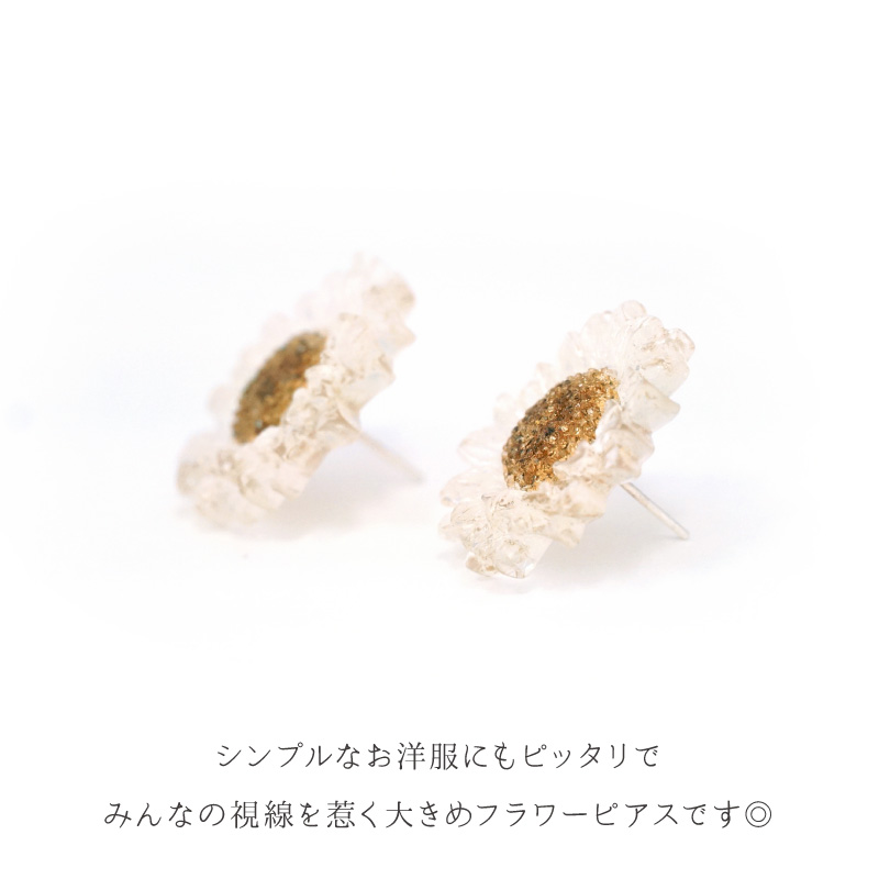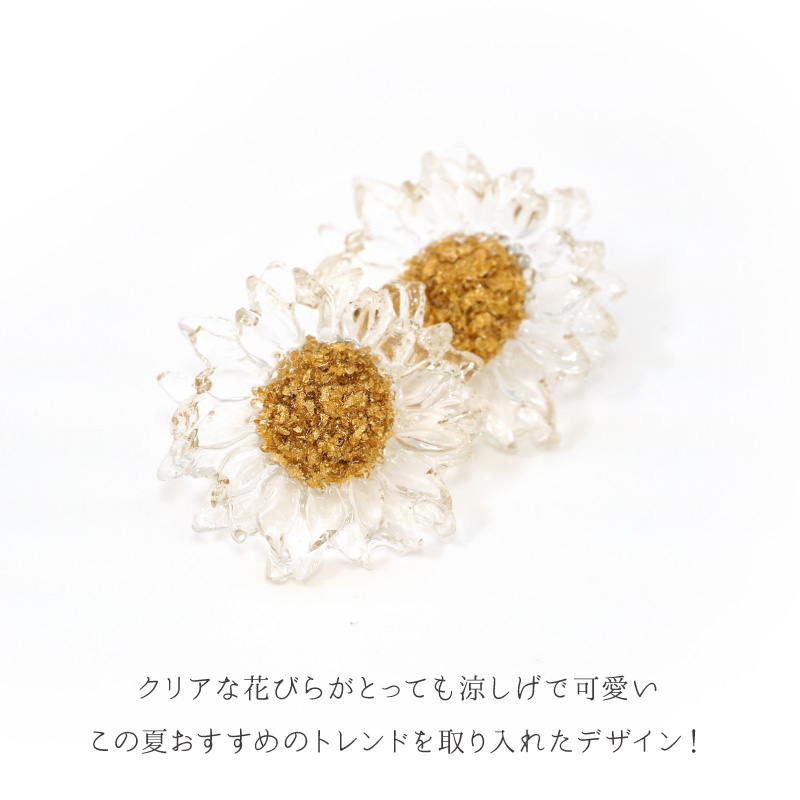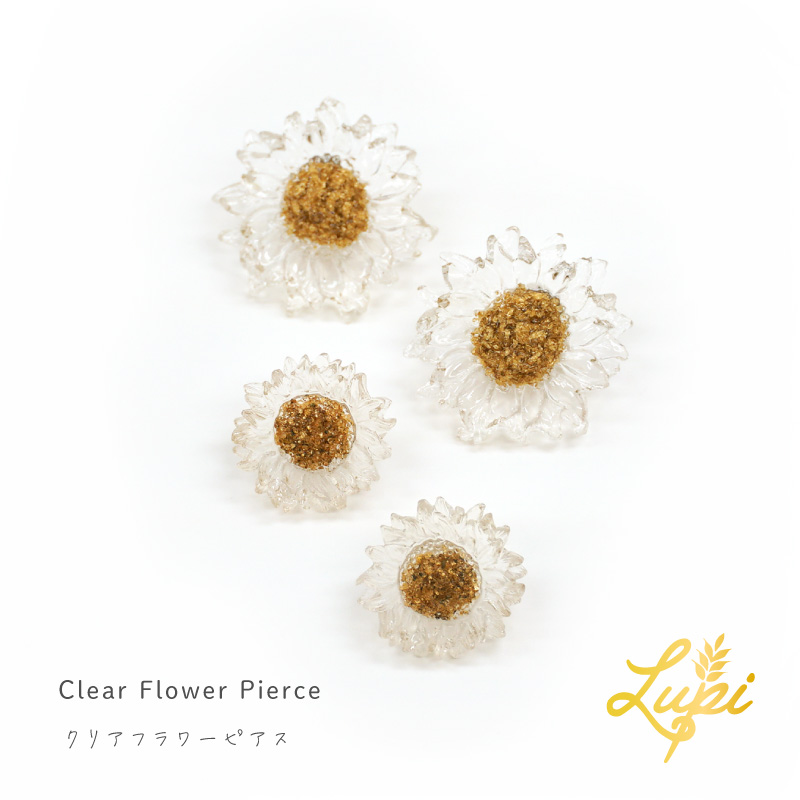 シンプルなお洋服にもピッタリでクリアがとても涼し気なフラワーピアスです☆