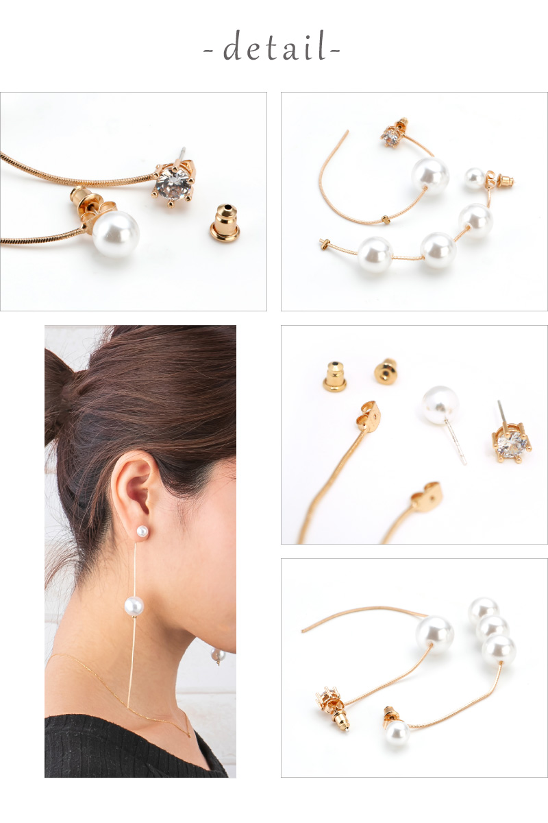 『三連パールスティックピアス』パール 結婚式 謝恩会 パーティー プレゼント