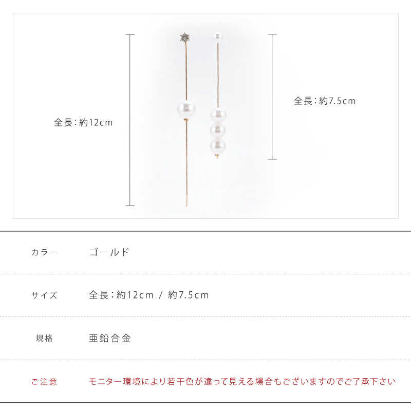 非対称のデザインがユニークで可愛いパールのロングピアスです。 タッセルは取り外し可能で付属のキャッチと付け替えれば シンプルな一粒ピアスとしてもお使いいただけます◎ ■カラー ホワイト×ゴールド ■サイズ 全長:約12.5cm/9cm ■規格 シルバー925 ■ご注意 モニター環境により若干色が違って見える場合もございますのでご了承下さい